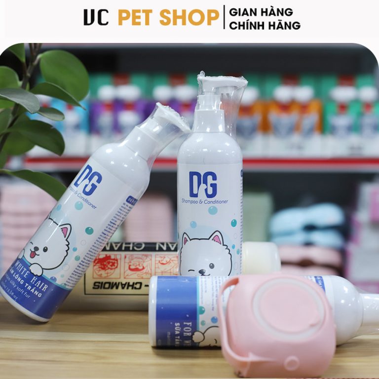 - Sữa tắm lông trắng DG Pet dành cho thú cưng có bộ lông trắng và sáng màu, mang lại vẻ ngoài tươi mới sạch sẽ cho Boss